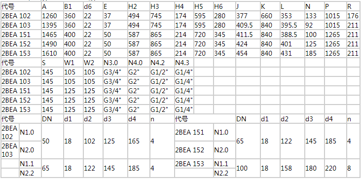 2BEA102/103/151/152/153直聯(lián)水環(huán)式真空泵傳動安裝尺寸: