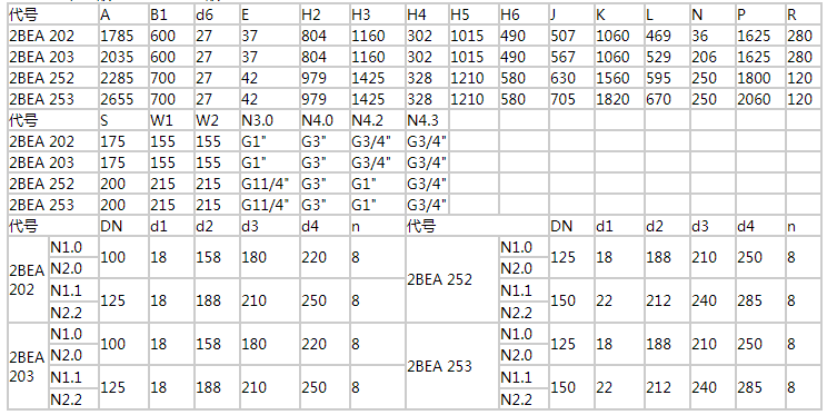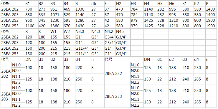 2BEA202/203/252/253直聯(lián)傳動水環(huán)式真空泵安裝尺寸: