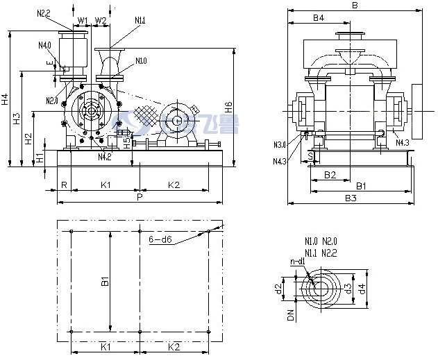N2.2分離器法蘭 N3.0工作液接口 N4.0分離器排液口