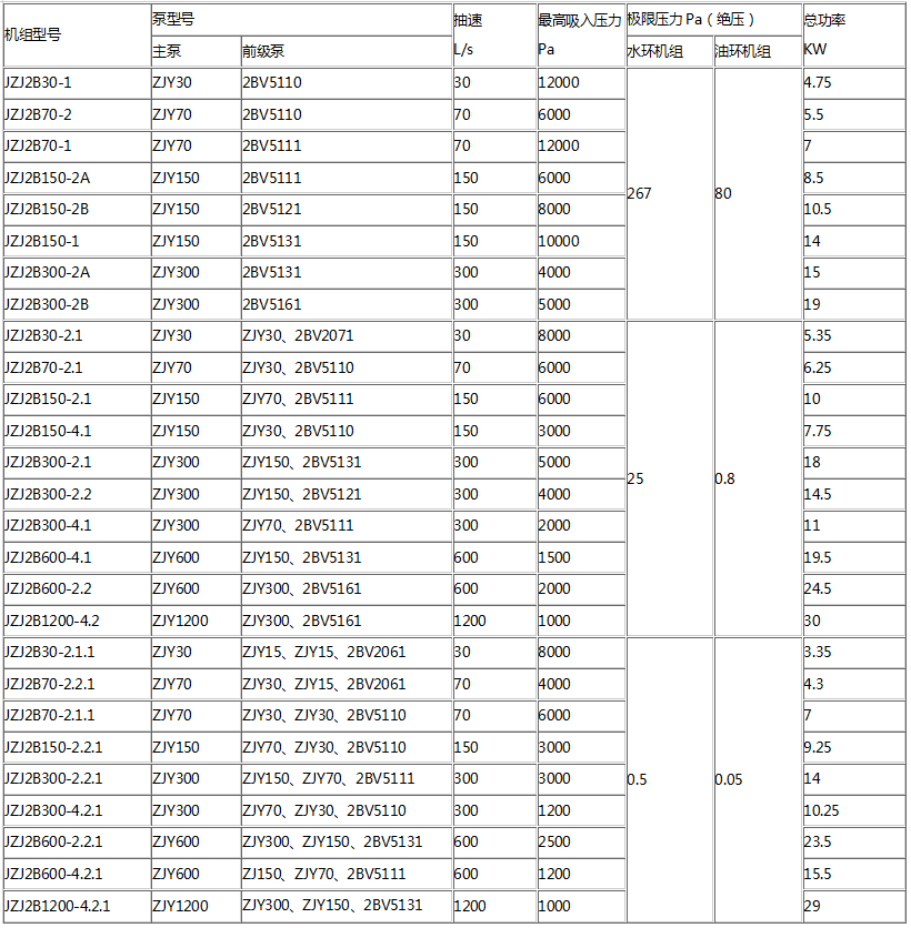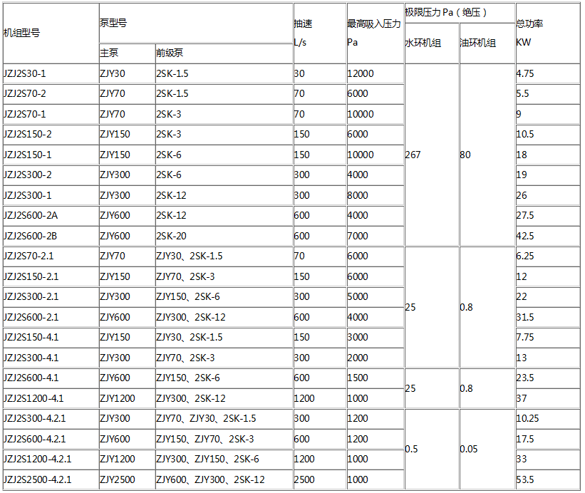 注:1.以上表格為行業(yè)推薦標(biāo)準系列,因在實際生產(chǎn)應(yīng)用中工作條件的不同,吸入氣體壓力會發(fā)生很多變化,所以在選型時應(yīng)根據(jù)實際抽氣過程、氣體釋放過程、可疑氣體冷凝情況、吸入壓力的變化時間等進行校核計算或參照現(xiàn)有設(shè)備使用情況選型。