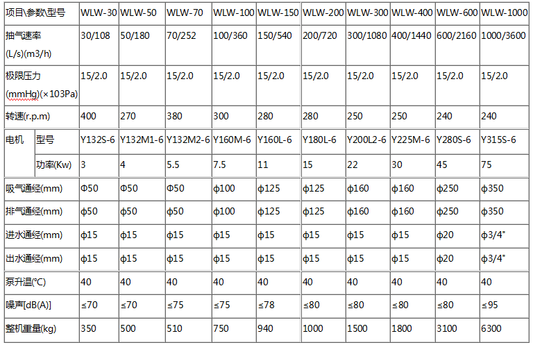 2、WLW型立式無(wú)油往復(fù)式真空泵型號(hào)、規(guī)格、參數(shù)